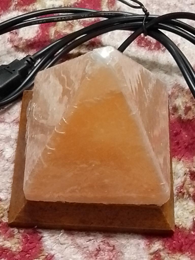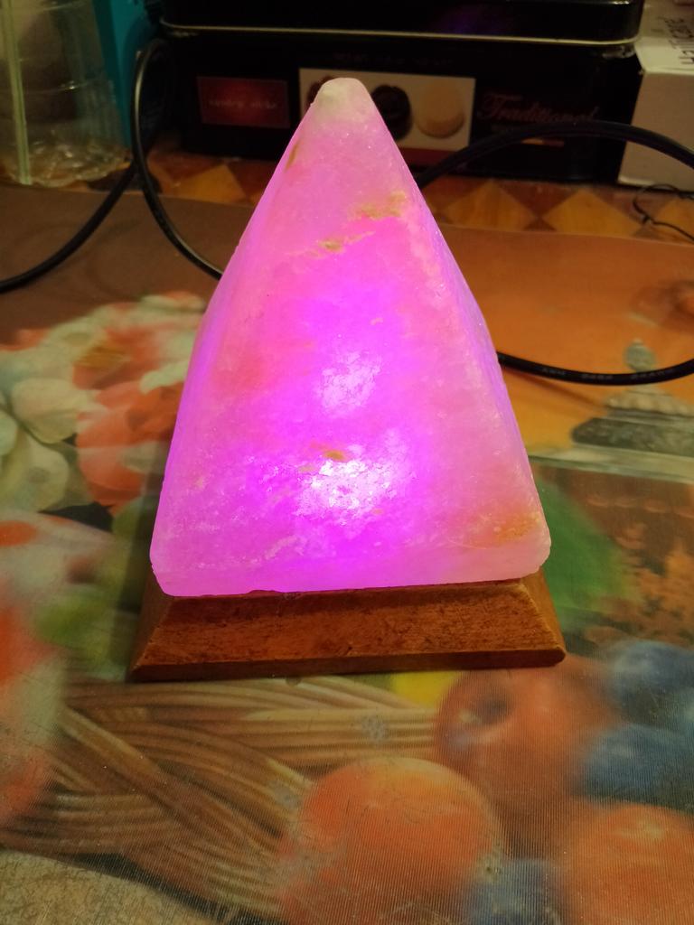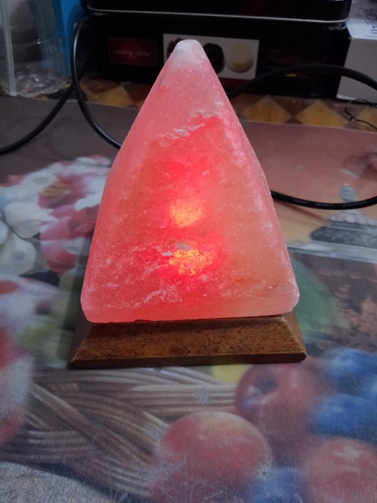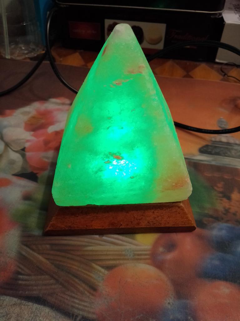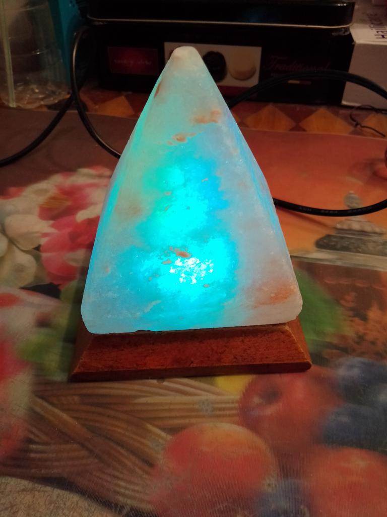 Himalayan Salt Lamp USB RGB 7 Colors Changing Hand Carved with Wood Base Pyramid Crystal Salt Rock
