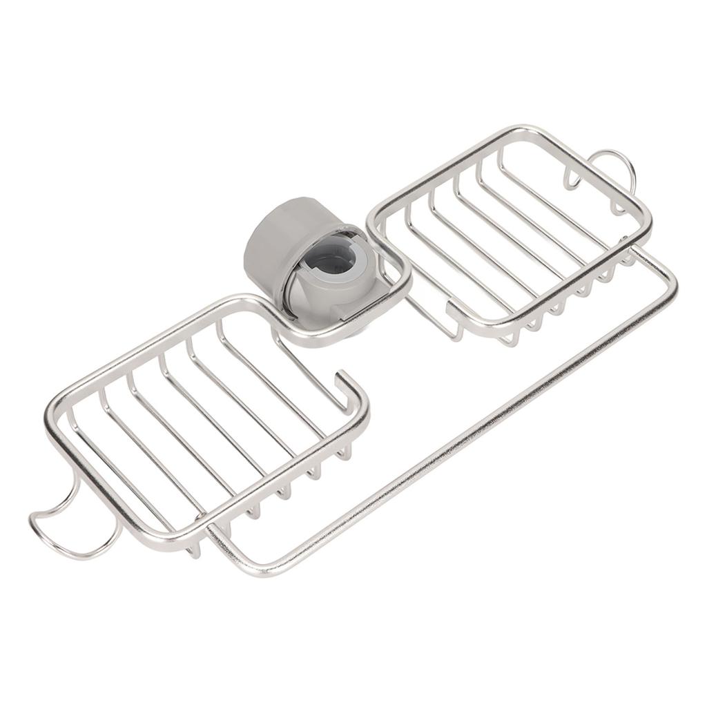 Faucet Storage Shelf Aluminum Plastic Two Containers with Towel Rod for Sponge Rag Kitchen Bathroom