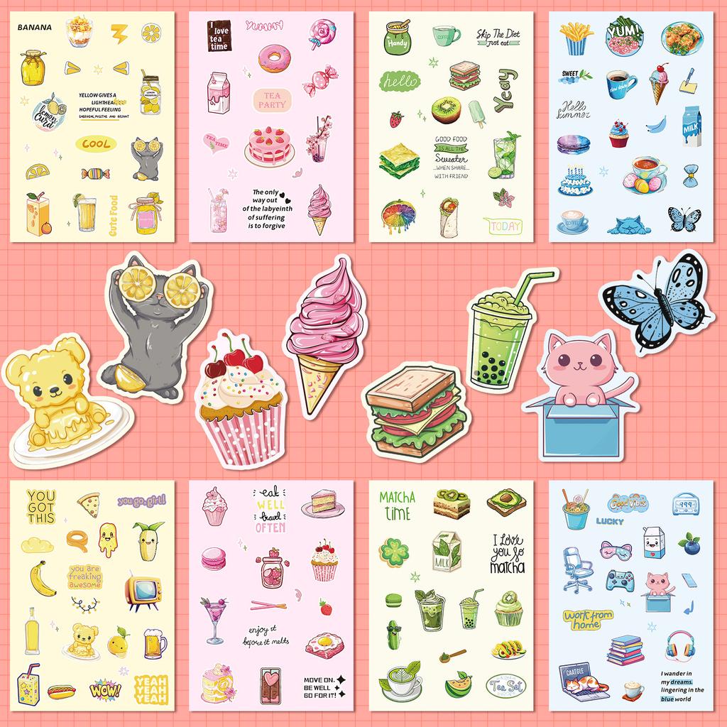 8 Sheets/Set Of Salt Ins Macaron Color Puzzle Stickers Ice Cream Bear Simple Diy Hand Tent Goo Card