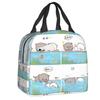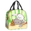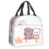 Peach and Goma Insulated Lunch Bags for Work School Picnic Cartoon Mochi Cat Leakproof Cooler Thermal Lunch Box for Women Kids