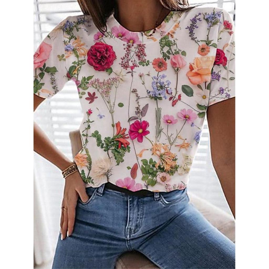 Summer Women's T Shirt Tee 3d Print Flower Casual Daily Short Sleeve Tops Fashion Round Neck T Shirts for Women Floral Graphics