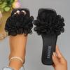 Summer New Slippers for Women Wearing Fashionable and Versatile Floral Flat Bottomed Solid Color Beach Slippers