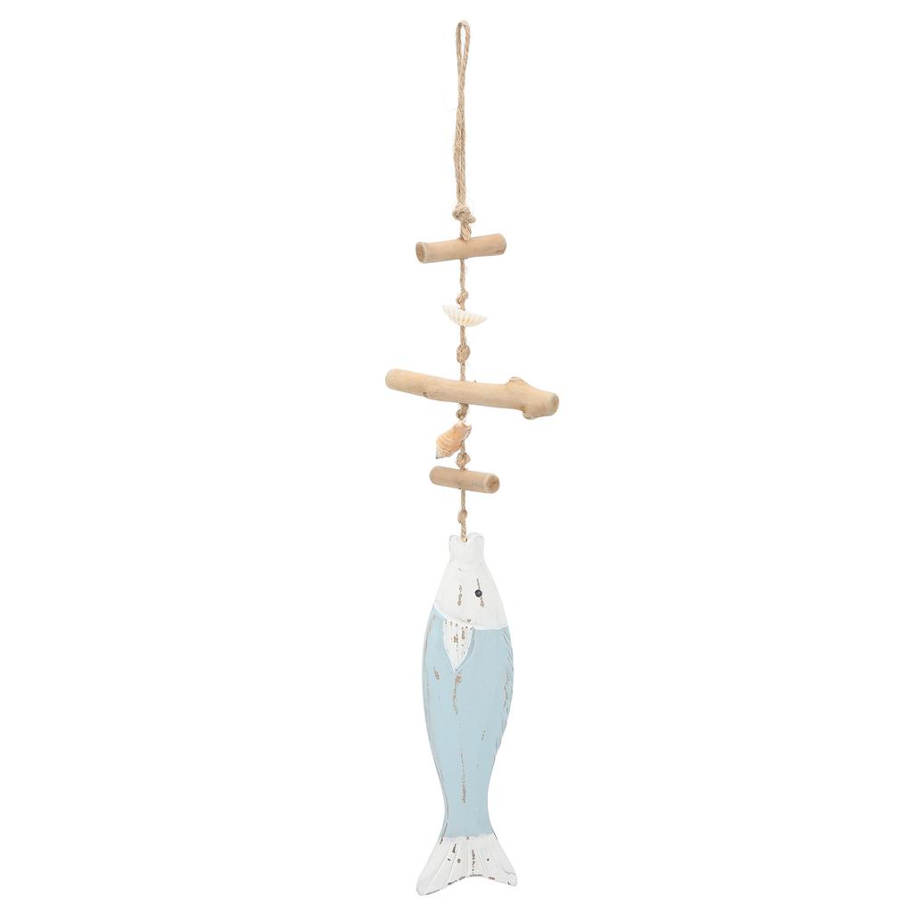 Wood Fish Decor Antique Engrave Safe Eco Friendly Pine Wood Light Blue Hanging Nautical Fish with
