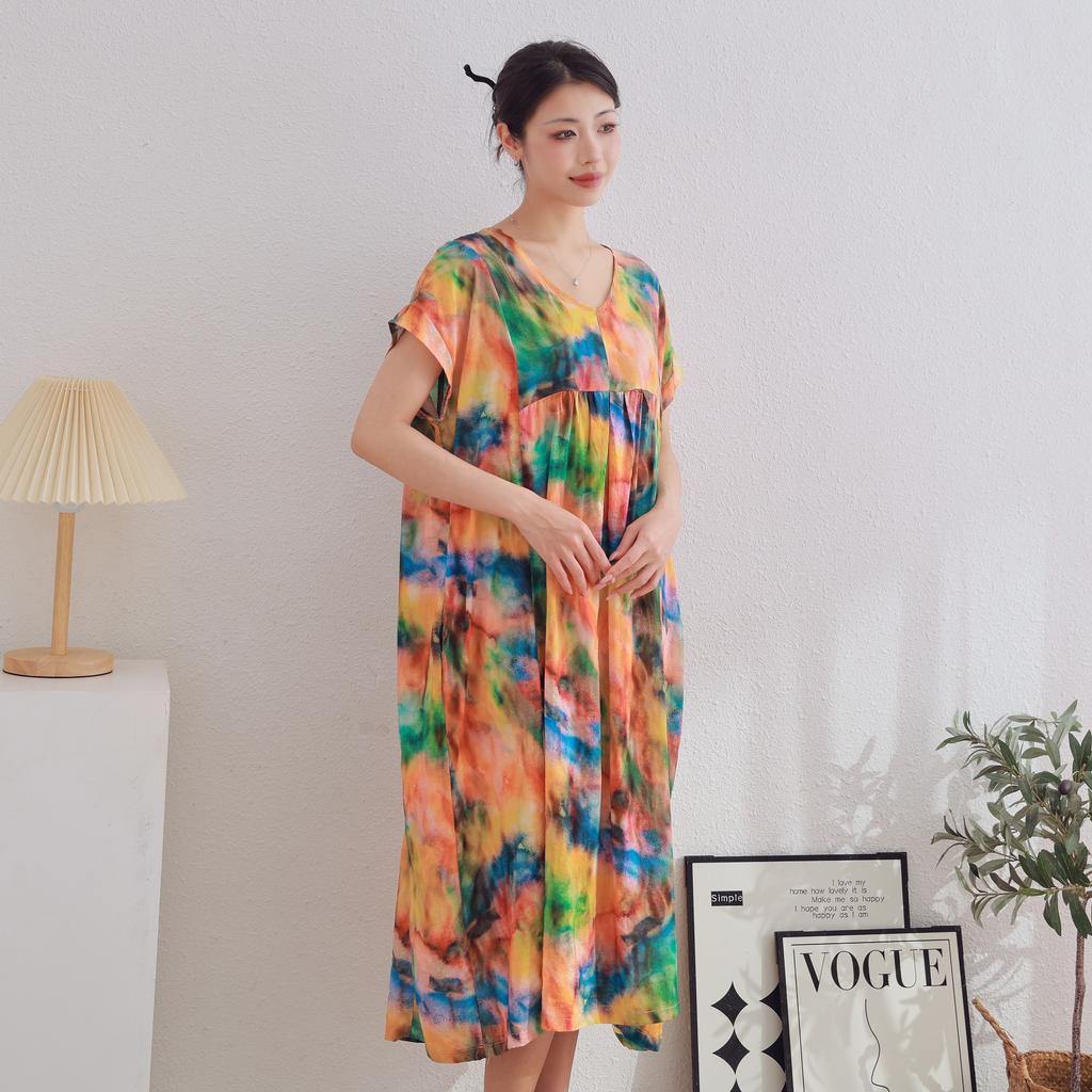 DIMANAF 2025 Women Plus Size Summer Dress V-Neck Casual Floral Dress Basic Vintage Loose Long Dress