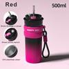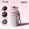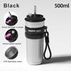 500ML Coffee Cup With Straw Stainless Steel Thermos Coffee Mug With Rope Thermo Bottle For Girls Vacuum Flasks Travel Mug Gifts