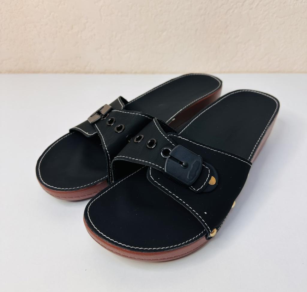 Flip flops Have a restrained design, look neat on the legs. Comfortable. Size 39 for a 24.5 cm foot fit perfectly. Good option for every day.