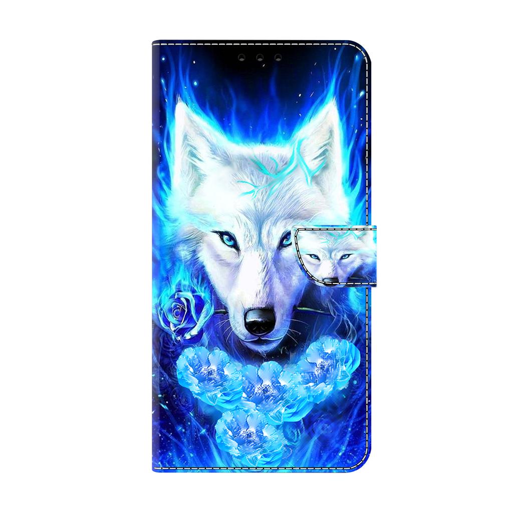 Crafted from faux leather, the phone case features a visually striking, cool white wolf pattern on its surface. The blue-and-white color scheme, combined with flame and floral elements, creates a mysterious yet luxurious ambiance. It instantly makes your phone stand out, showcasing your unique taste.