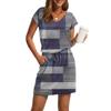 Women's Fashion V-Neck Short Sleeve Drawstring With Pocket Printed Casual Dresses