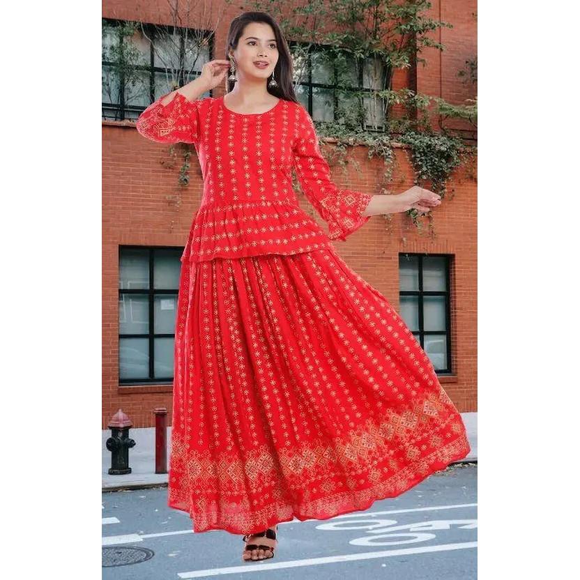 Women Party Wear Rayon Top Kurta Skirt Set Indian Bollywood Top Tunic Kurti VSO-1708 C