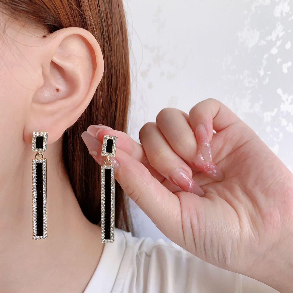 Chic Black Diamond Drop Earrings - Stylish and Elegant for Trendsetters