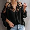 Women's Chiffon Blouse Unique Transparent Lace Floral Embroidery Cloth Fashion Top