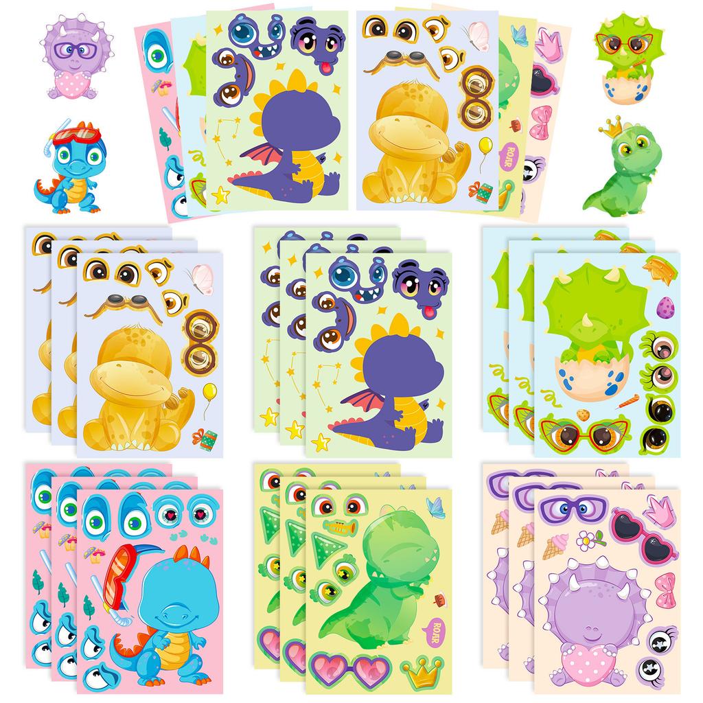 6 Sheets/Pack Dinosaur Face Change Cute Wind Independent Diy Children Quiet Toy Face Change Sticker