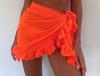 European & American Style Solid Chiffon Bikini Beach Cover-Up Skirt with Ear Edge for Women