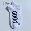 5 Pairs of Large Size Short Socks Letters Tide Men Boat Socks Hip Hop Skateboarding Sports Cotton Socks