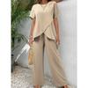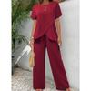 JKASHDK Women's Fashion Casual Summer Spring Solid Color Print Short Sleeve O-Neck Trousers Pants Suits