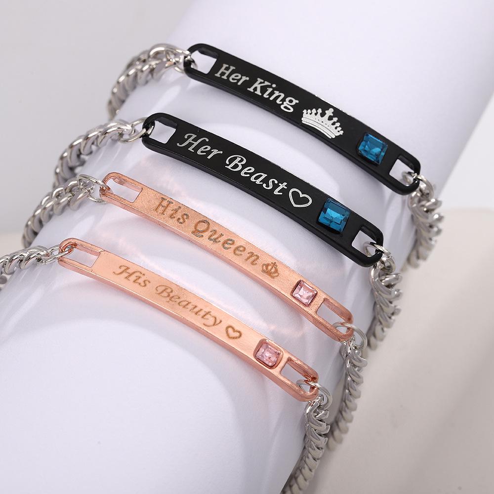 His Beauty & Her Beast Couple Bracelets - King & Queen Diamond-Studded Chains