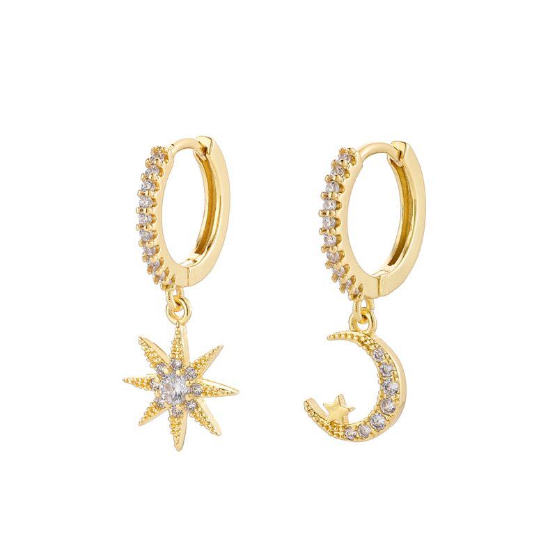 S925 Silver Needle Geometric Star, Moon, Lightning, and Sunflower Trendy Earrings