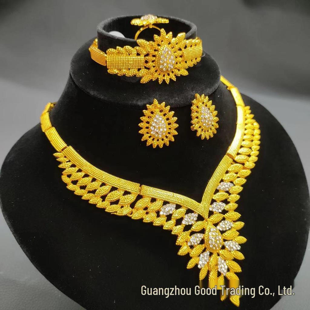 24k Gold Plated Dubai Bridal Jewelry Set: Necklace & Earrings (4-Piece)