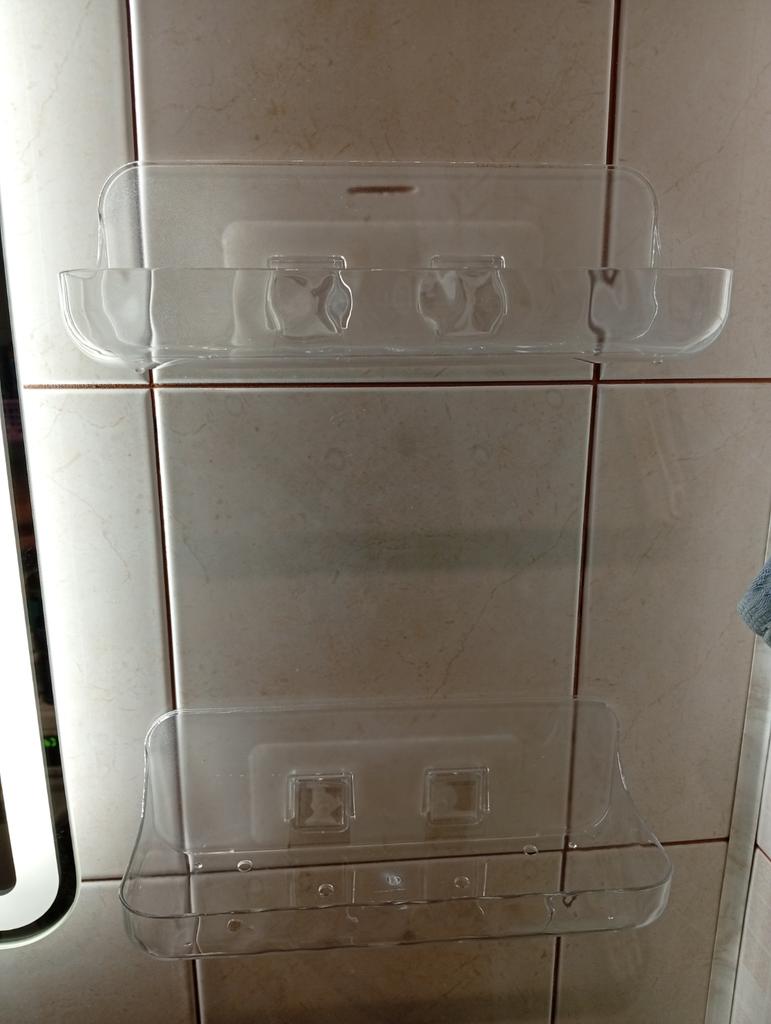 The shelves are super. I ordered three more pieces for the second time. They arrived in a regular little bag. I am happy. They stuck easily to the tiles. They hold on tightly.