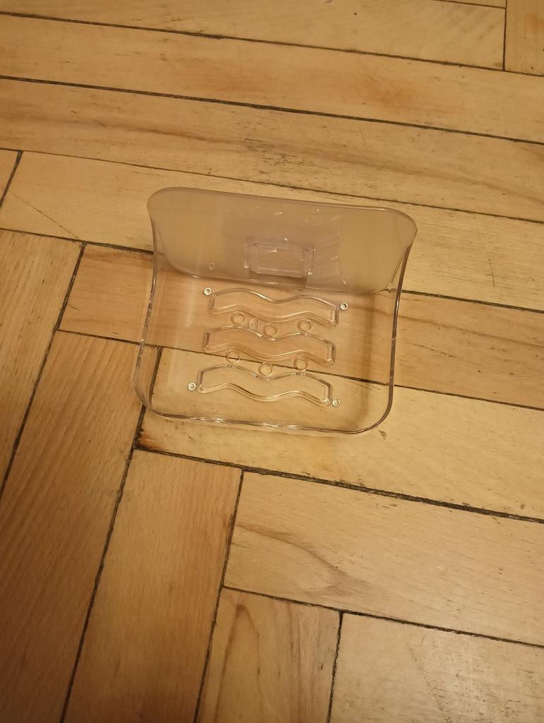 The item arrived as in the picture. It didn't stick to the bathroom wall from the very beginning.