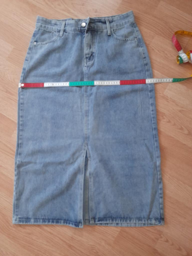 Summer Women High-waist Retro A- Line Skirt Pockets Front Slit Washed Blue Denim Skirts Hip-covering Straight Long Jeans Skirt