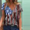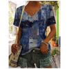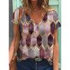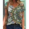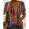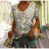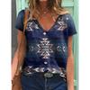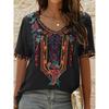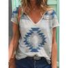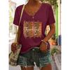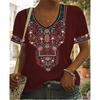 Summer V-neck 3D Retro Ethnic Style Printed Top Fashionable Casual Short Sleeved Women's T-shirts
