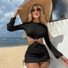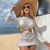 Women Bathing Suit Cover Ups Three Piece Bikini Set Knitting Cover Up Tie-Up Hollow Out Swimsuit Coverup Swimwear