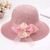 Bow Flowers Straw Sun Hat Woman Bucket Summer Sunscreen Wide Brim Sun Cap Outdoor Beach Accessories
