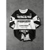 Men's Racing Theme Plaid Flag Pattern Letter Print T-shirt,Round Neck Short-sleeved T-shirt,Summer Outdoor Fashion