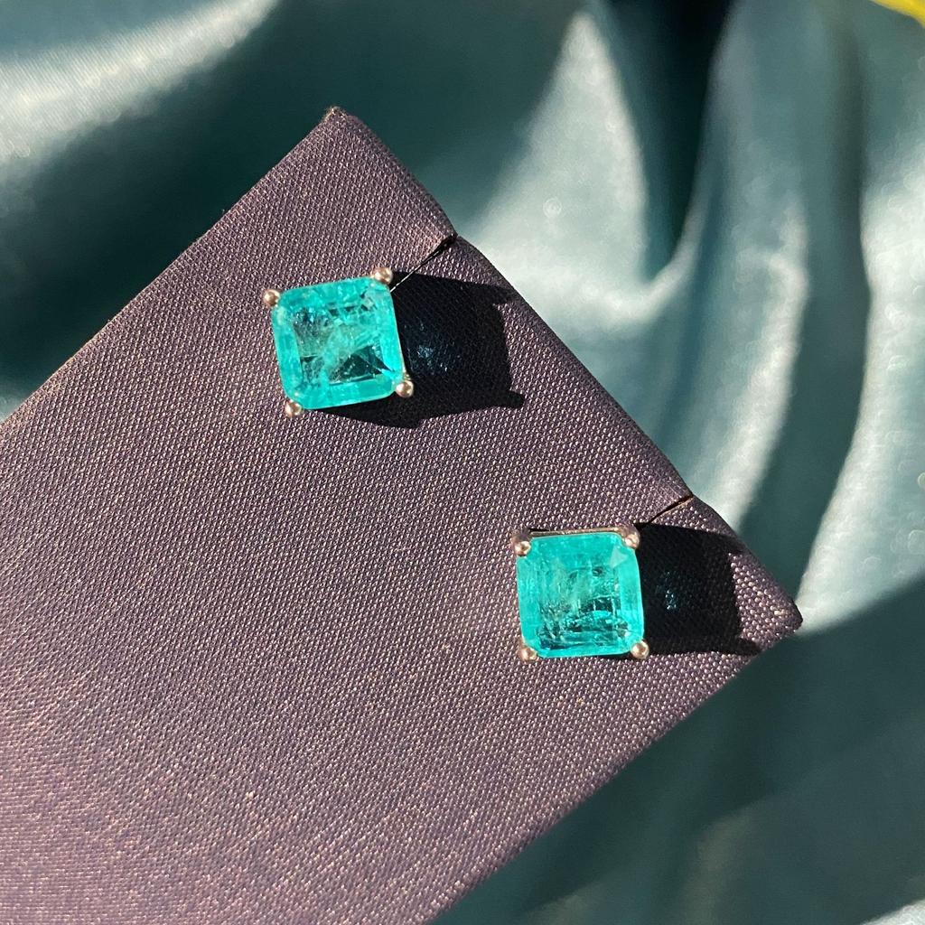 Vintage 100% Sterling Silver Paraiba Tourmaline Gemstone Birthstone Earring Studs Earrings Ladies Fine Jewelry