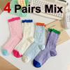 4 Pairs Women Mid To Small Leg Socks Knee High Socks Socks Black White Gray Summer Thin Sweet Style Transparent Stacked Socks