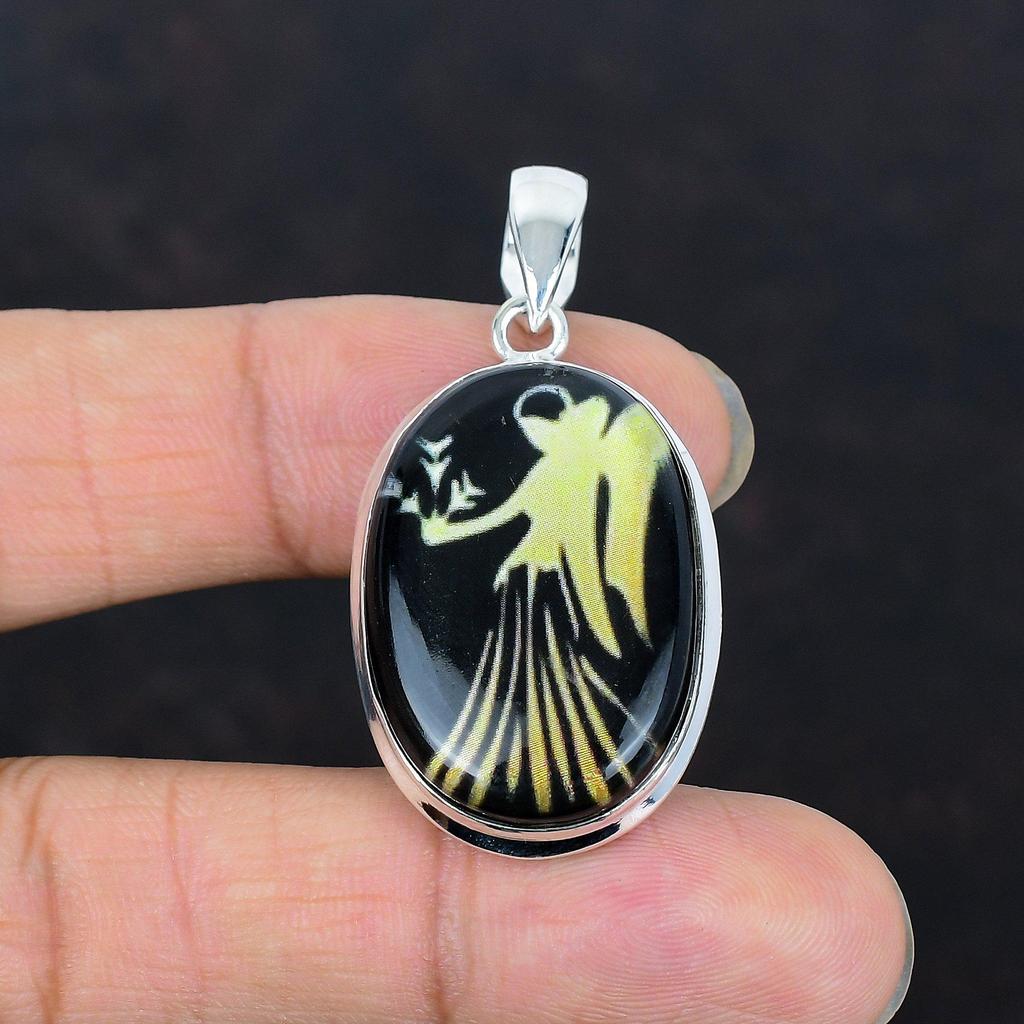 Virgo Zodiac Sign In Black Onyx Pendant 925 Sterling Silver Pendant Handmade Horoscope Jewelry Astrological Sign Necklace Gemstone Pendant