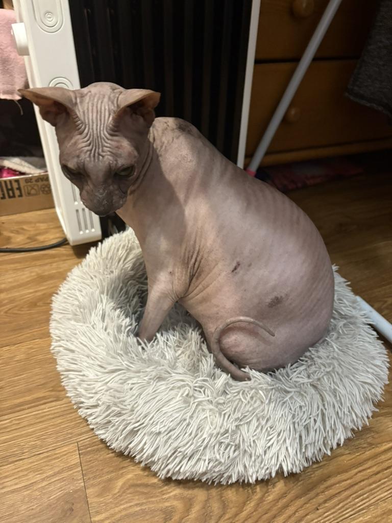 Looks like an inside-out hat, the cat doesn't want to lie in this "bed" at all yet. Small, no ribs