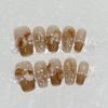 Flowers and Brocades Wear Nail Pieces Handmade High-end Caramel Color French Rose Manicure Fake Nails Removable