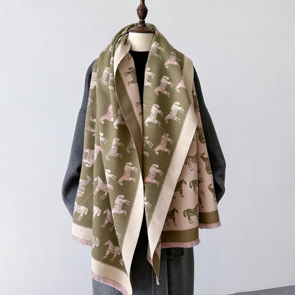 New Winter Cashmere Women Scarf Female Luxury Horse Print Scarves Long Bandana Women Fashion Shawl Wraps Foulard Poncho Pashmina