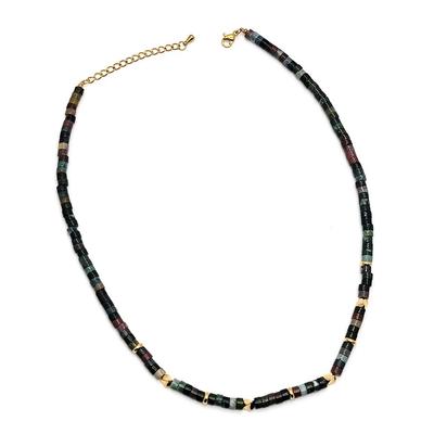 [R5823] - Gold Plated Necklace 'Mineralia' Golden Green (jasper) - 45cm 5mm