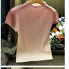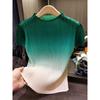 Luxury Gradient Color Ruffled Tops Women Stylish O-neck Short Sleeve T Shirt Casual Outfit