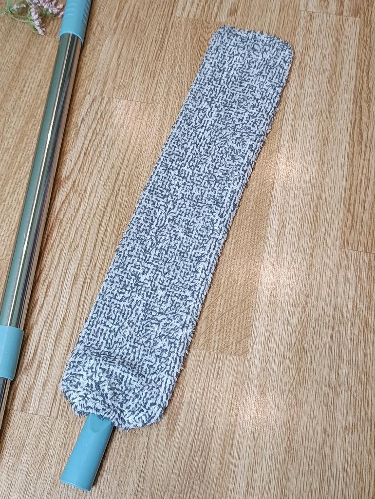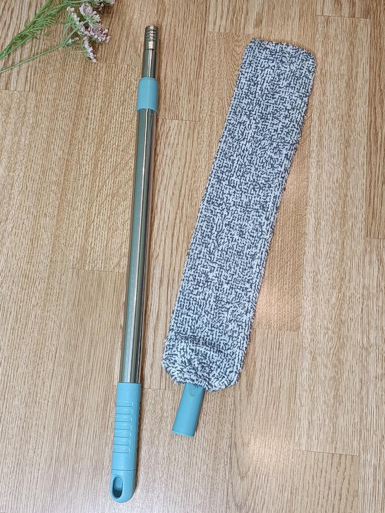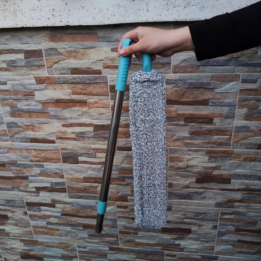 Mop for hard-to-reach places with telescopic handle This is the perfect solution for keeping your home clean. Thanks to its flat design, it easily penetrates narrow spaces and effectively removes dust and dirt. The mop is equipped with a special pad that attracts and holds dust, preventing it from settling again.. The handle is telescopic, so you can freely remove dust even on a high ceiling. Handle length: from 61-104 cm. The quality of the mop is good. The mop does its job perfectly! Satisfied with the order!