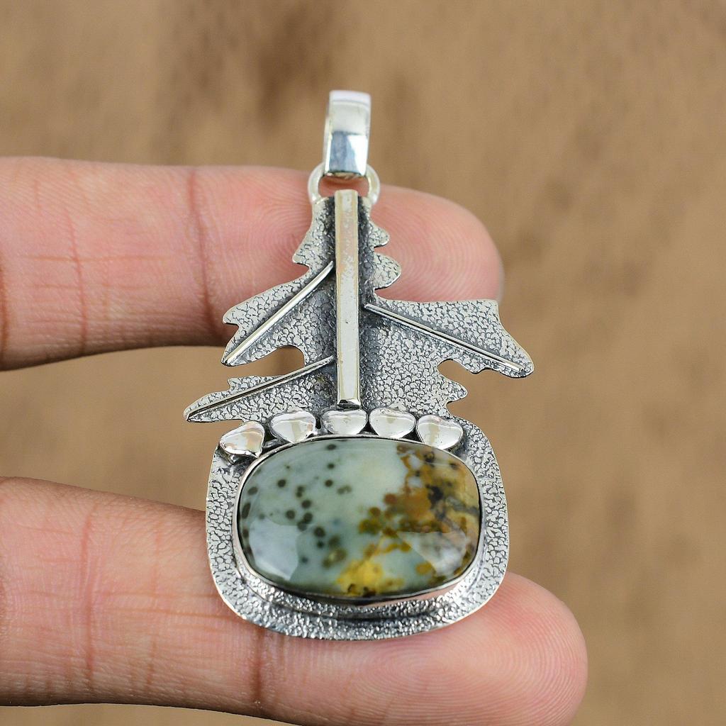 Natural Ocean Jasper Gemstone Pendant Green 925 Sterling Silver Indian Jewelry