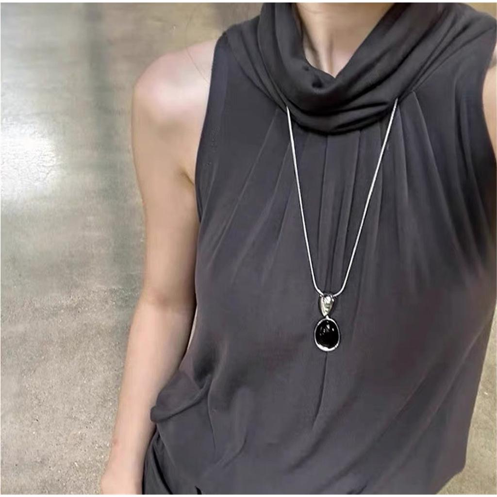 Tooxika Niche Light Luxury Simple High Feeling Onyx Water Drop Necklace Snake Bone Chain Drawstring Sweater Chain Female