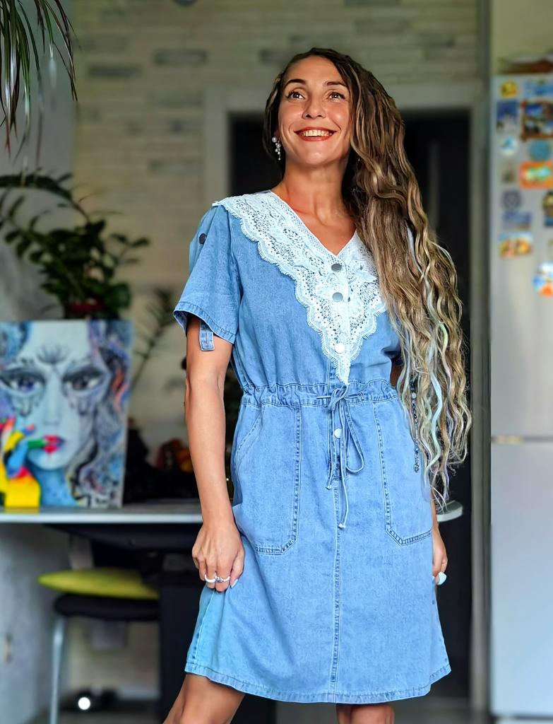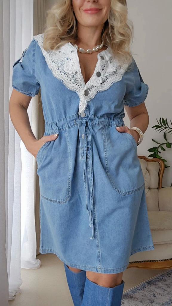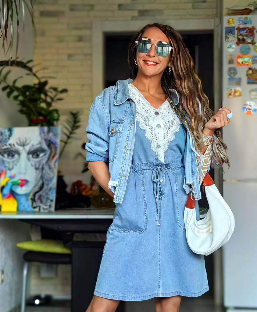 Cute denim dress ๐! Delivery time ๐:14 days to Germany. โป๏ธScope of delivery: The scope of delivery includes a beautiful dress ๐ in the corresponding color and size. The product is available in 3 variants for selection. It is available in sizes from S to 3XL. I ordered the product in size S in the second variant and the dress ๐ fits me great and the color is exactly as pictured. ๐ค๐ค๐ค Normally I wear size 36( S).,I weigh 53 kg distributed over 167cm. The dress fits true to size! ๐Quality โป๏ธ: The dress is light and swings beautifully. โ ๏ธ๐The fabric is very pleasant on the skin. The dress ๐is opaque. It is Mega for the summer. I liked the color of the dress best. โ ๏ธRegarding the material composition: Cotton + Polyester . However, the fabric is very comfortable on the skin. The dress comes down to about my knees. โณ๏ธSummary โณ๏ธ: A beautiful denim dress ๐ that must be ordered in your normal size. It runs true to size. I highly recommend the product.,5 stars ๐๐๐๐! Thank you Joom and the seller!!!๐ค๐ค๐ค๐๐