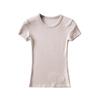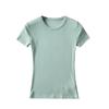 YPFF Summer Women's Solid Color Elastic Thread Basic Short-Sleeve Round Neck Top