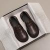 Small Black Leather Shoes Women's Thick Heels Autumn and Winter New Models One-pedal Thick Heels Shoes Round Head Two Women's Shoes