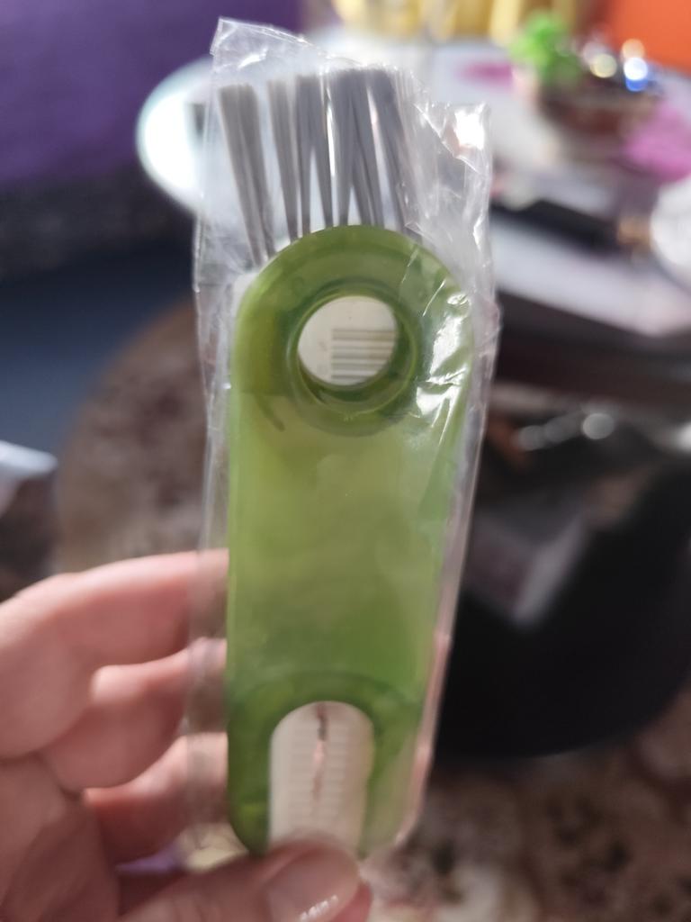 4.Has 3 functions; ① Grey beveled brush can remove stubborn stains on the bottle lid. ② Stainless steel spiral brush can remove the stains in the creases and gaps inside the bottle lid. ③ U -shaped silicone brush can clean the stains of the cup mouth well.