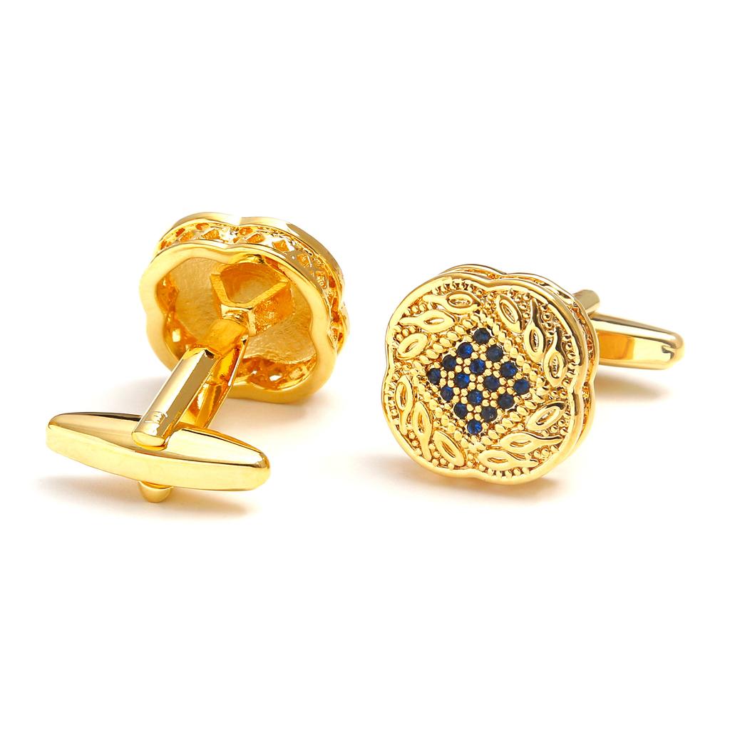 Hot-Selling High-Quality Light Luxury Blue Diamond Square Copper Gold French Men'S Cufflinks Jewelry