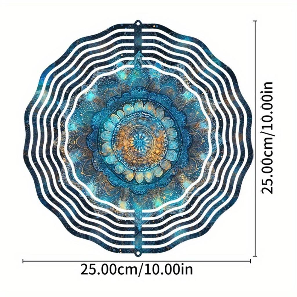 Bohemian Wind Spinner Outdoor Decor 10 Inch Hanging Garden Ornament with 360 Swivel Hook Blue Teal Gold Metal All Season Gift