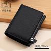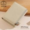 Leather Japanese Wallet Women's Three-fold Credit Card Bag Folding Card Clip Cowhide Lychee Pattern Zipper Change Bag Women