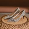 Huizhou Spring Thousand Bird Grid Shoes Spring Women's High Heels Women's Fine Heels High-end Leather Single Shoes Women