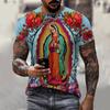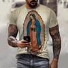 Summer Round Neck 3D Guadalupe Virgin Mary Catholic Print Top Fashionable Casual Short Sleeved Men's T-shirts