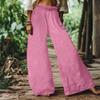 Cargo Pants Women Cotton Linen Button Elastic Waist Wide Leg Trousers Summer Loose Fit Hiking Jogger Pant With Pocket